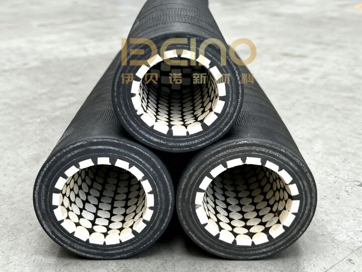 This type of industrial wear-resistant hose features a multi-layer composite structure that combines high-purity alumina ceramic lining with reinforced rubber materials. The ceramic layer acts as the primary wear-resistant barrier, while the outer rubber structure provides flexibility, sealing performance, and impact resistance.